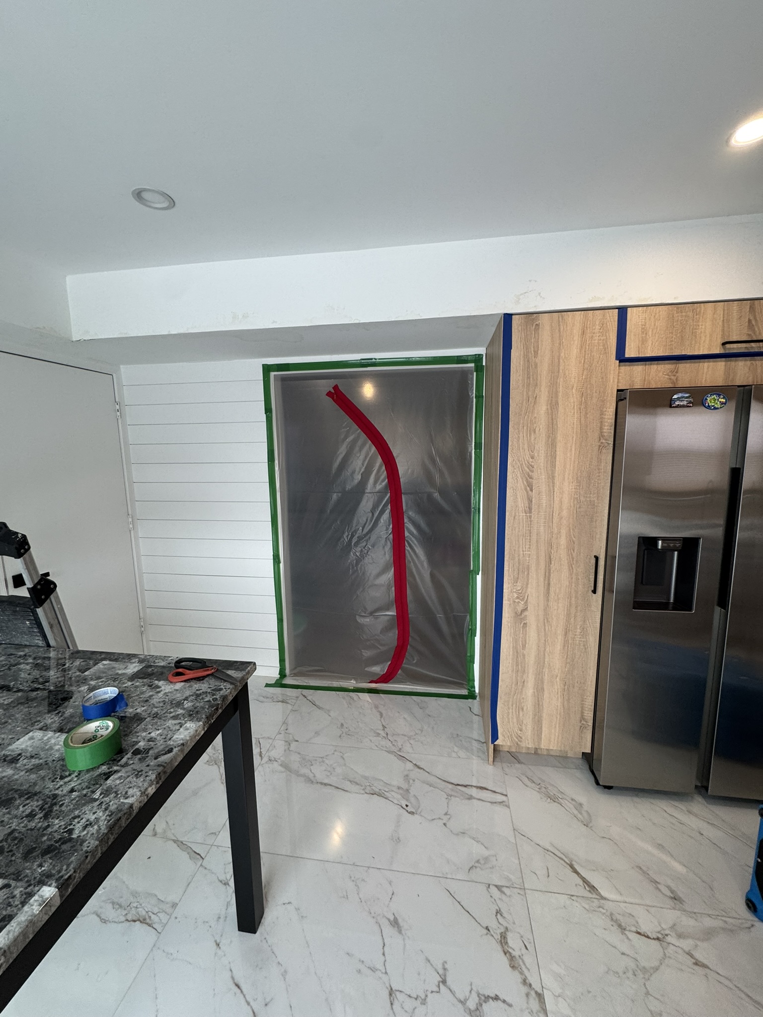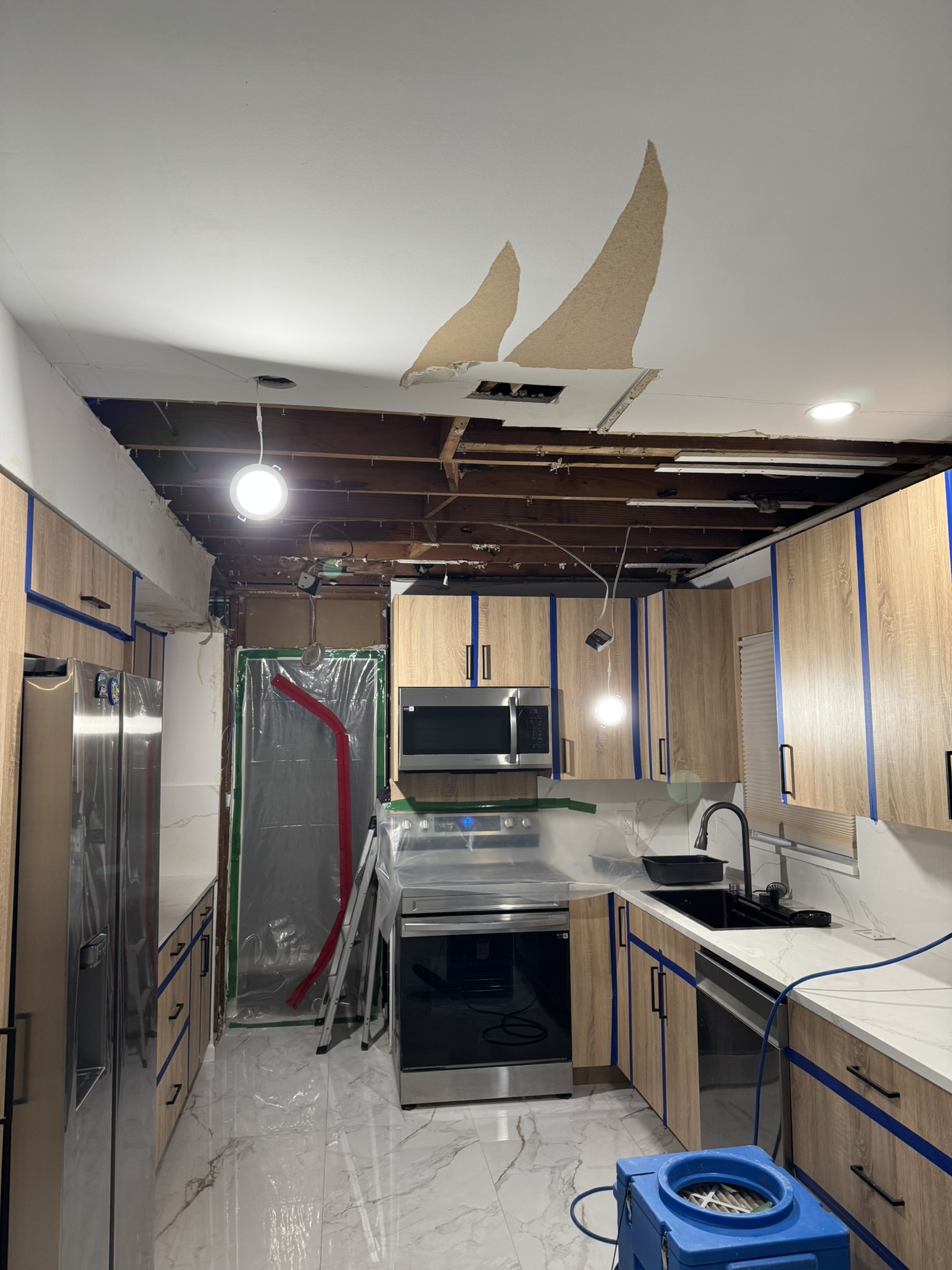 The homeowner contacted our team after discovering water damage affecting their kitchen and surrounding areas. Signs of moisture were visible in the ceiling and walls, indicating that water had traveled beyond the surface and into structural materials.