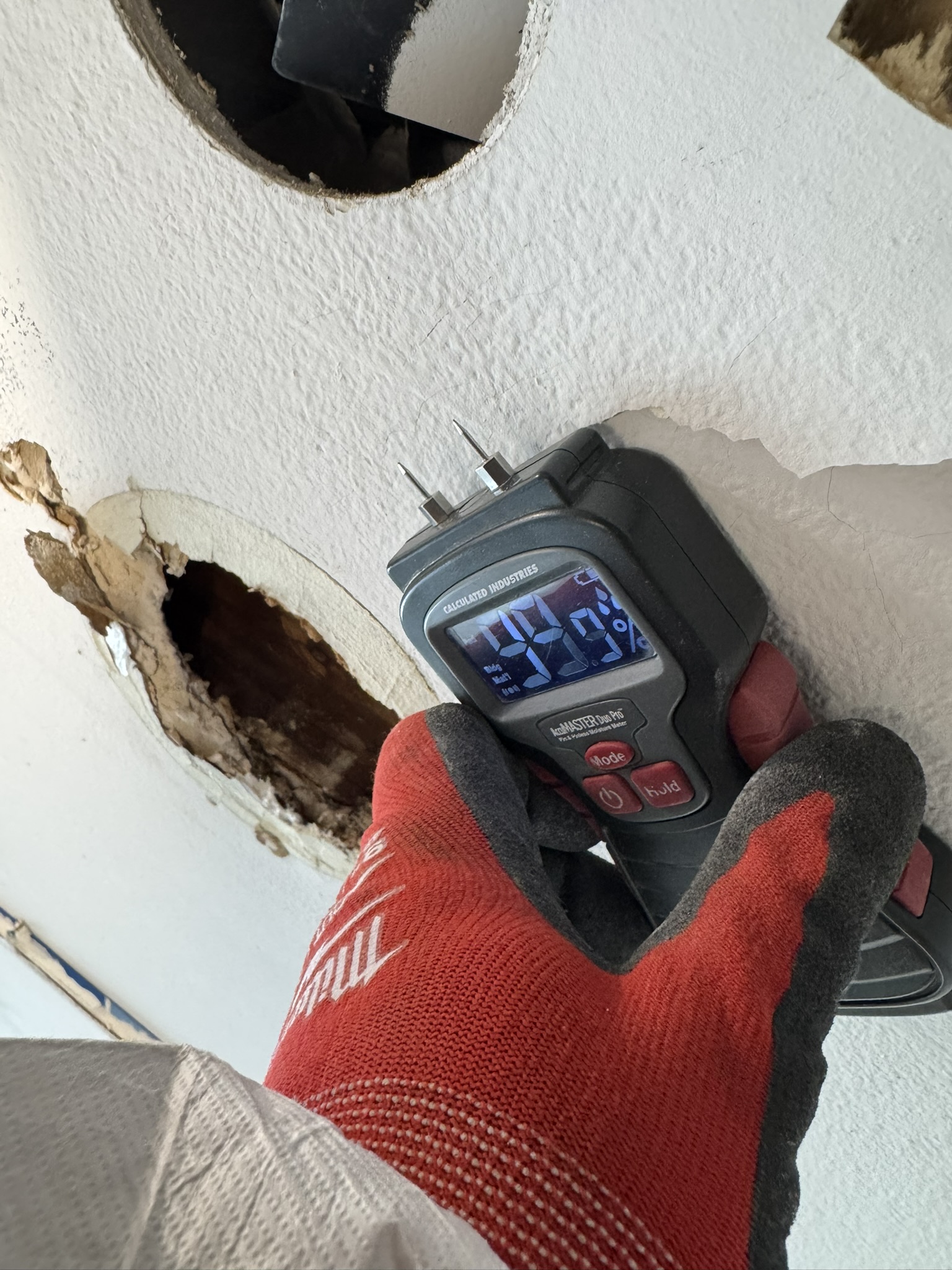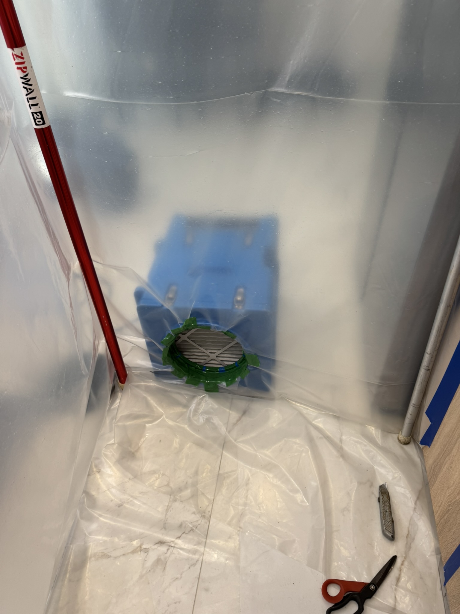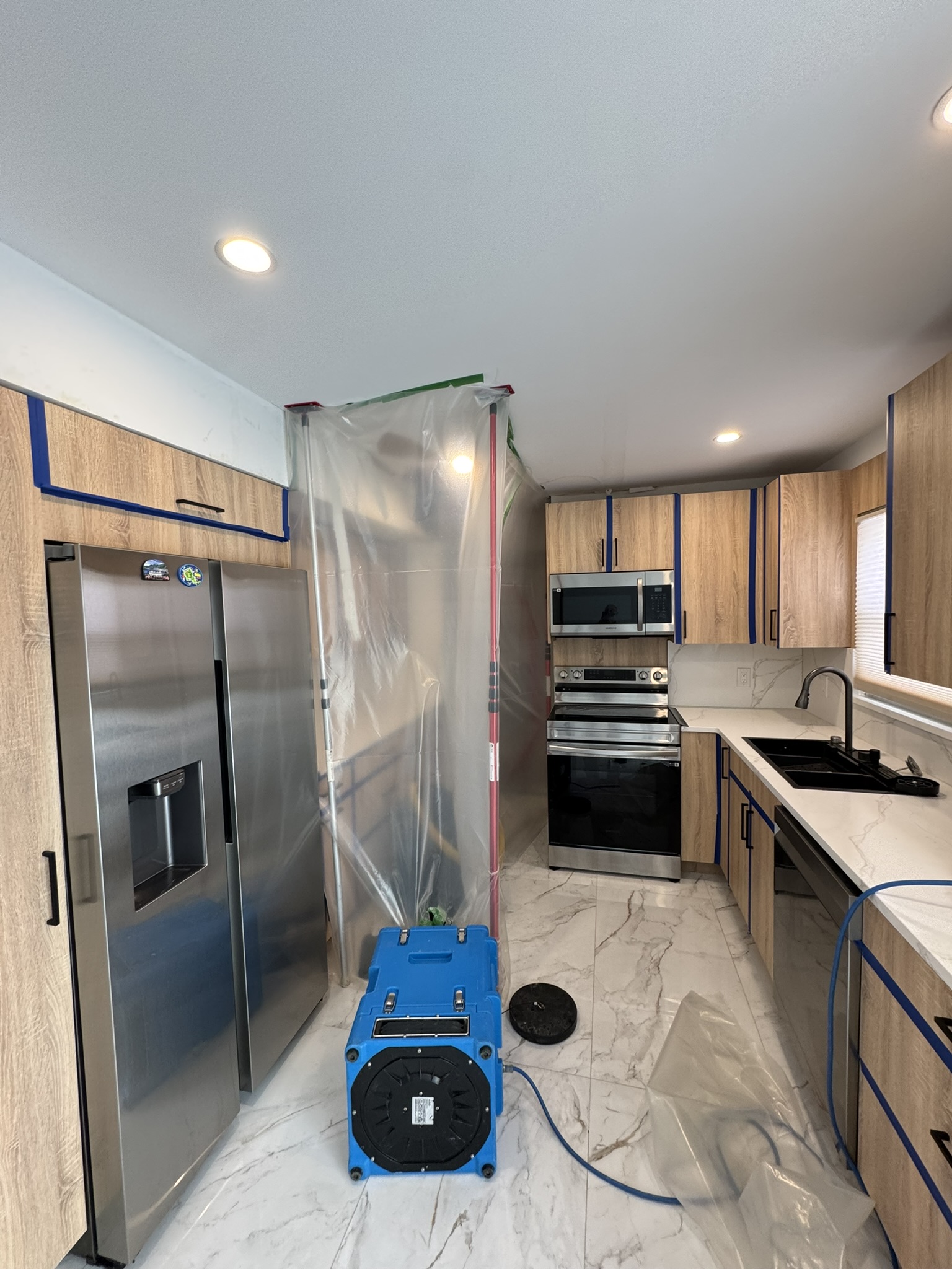 Our technicians began with a comprehensive inspection and moisture mapping, using professional meters to identify elevated moisture levels in ceilings, walls, and flooring throughout the affected area. Once the extent of the water intrusion was confirmed, we established containment barriers to isolate the work area and protect the rest of the home during mitigation.