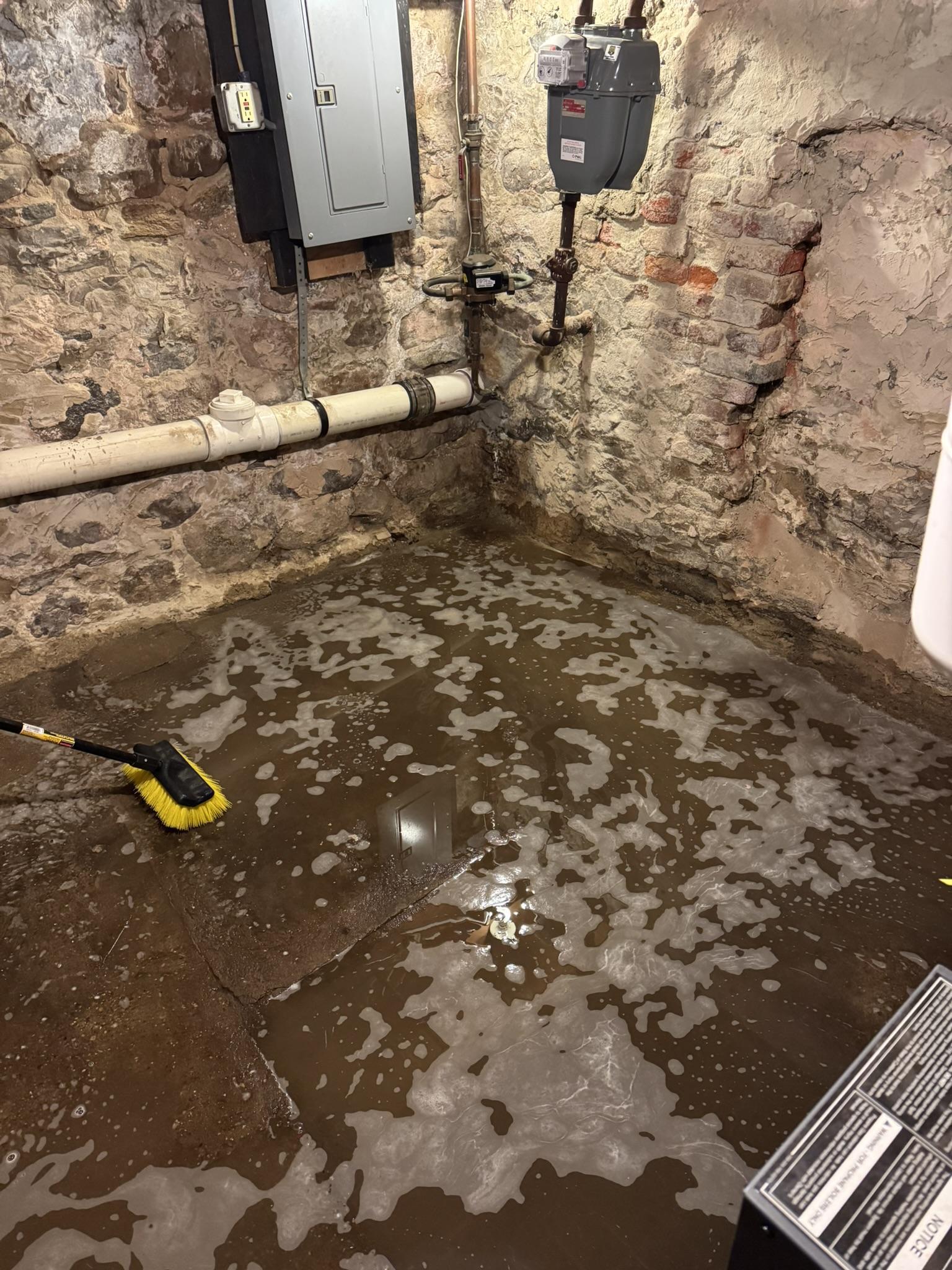 Our team promptly responded to the water damage issue. We performed comprehensive water extraction from the basement, utilized specialized equipment to remove standing water, and cleaned affected areas, including around utilities and the stone foundation, to mitigate further damage.
