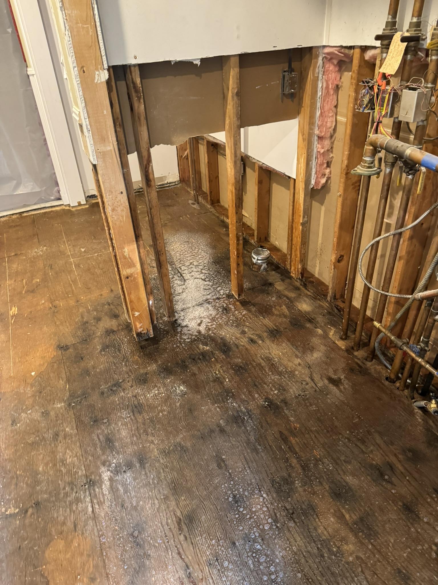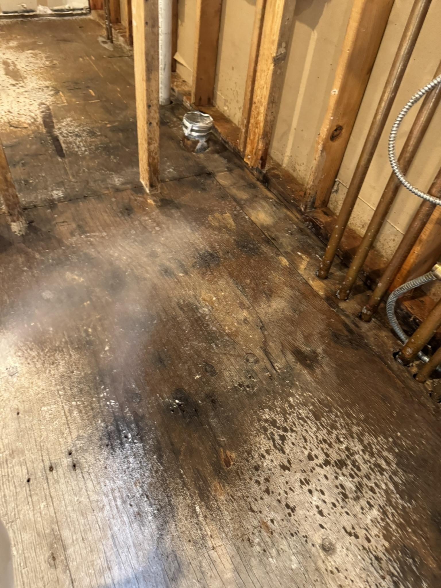 The customer experienced significant water damage, likely to their flooring and lower wall sections, requiring professional restoration.