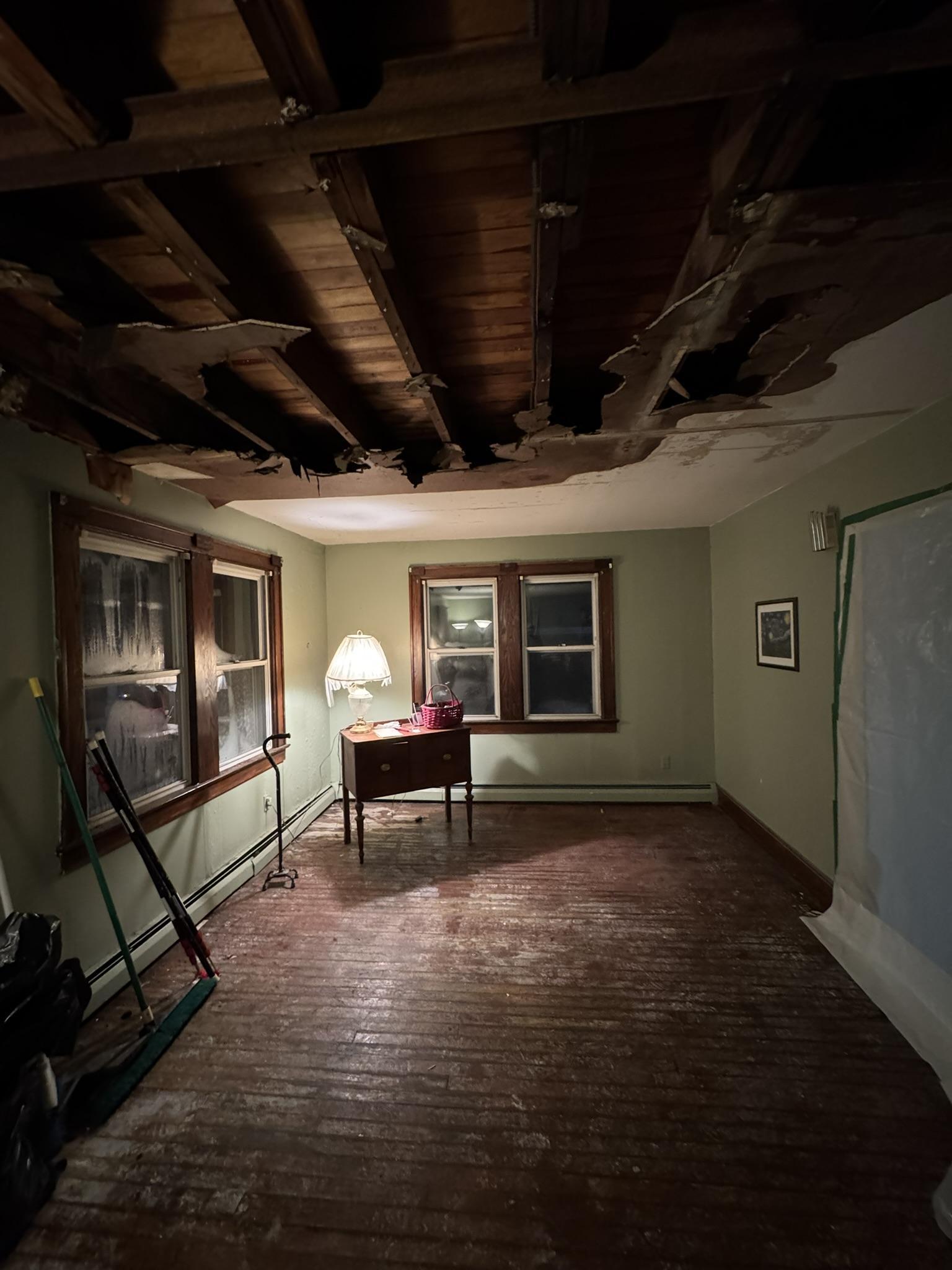 Our team provided comprehensive water damage restoration services, which included initial assessment, demolition of the damaged ceiling and wall sections, thorough debris removal and cleanup from the affected areas, and efficient removal of all waste materials from the property, preparing it for further reconstruction.